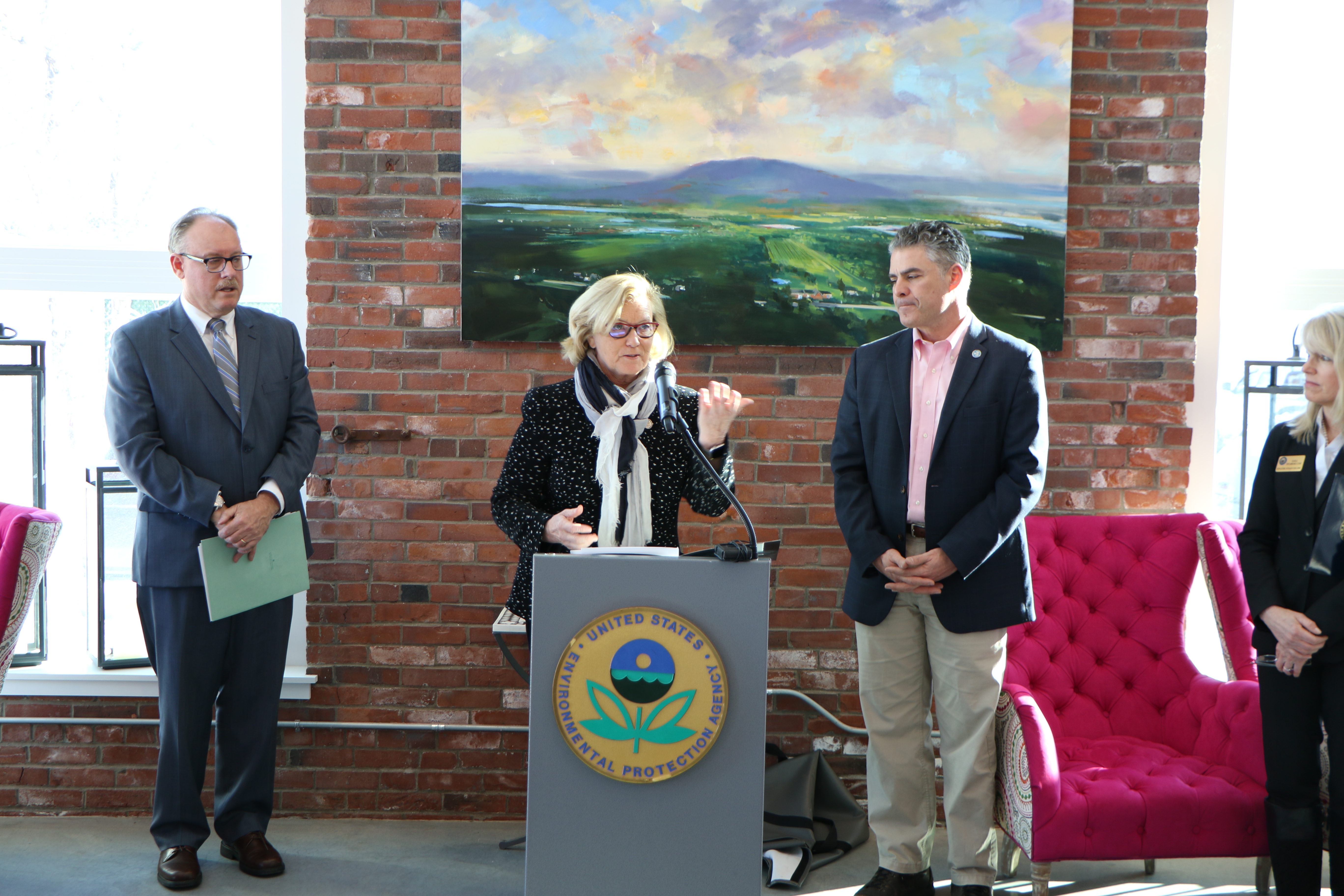 Congresswoman Chellie Pingree highlighting success of EPA Brownfields grant program at Thompson's Point in Portland last week. With her is former EPA Regional Administration Curt Spalding (left), an official in the Obama Administration.
