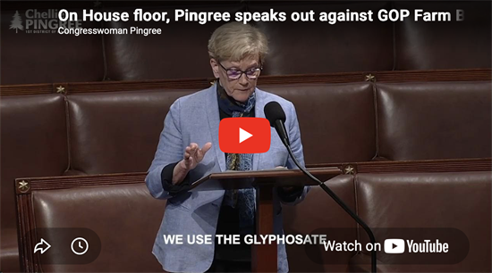 Speaking on the House floor last night, Congresswoman Chellie Pingree (D-Maine) condemned the Republican Farm Bill that fails farmers and puts chemical company profits over the health of Americans. Pingree spoke in support of an amendment to remove dangerous, industry-written language that would pre-empt state rights to regulate pesticide usage or labeling and provide a liability shield for pesticide manufacturers. Representative Anna Paulina Luna’s (R-Fla.) amendment language is identical to the bipartisan amendment Pingree and Representative Thomas Massie (R-Ky.) introduced.